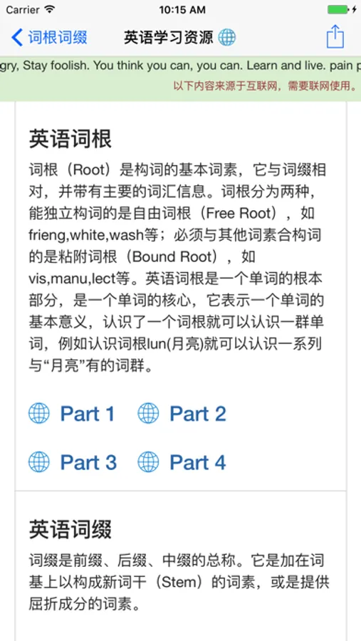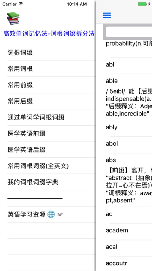 国内外研究表明词根词缀法是记忆单词的绝佳方法.就像汉语词语由汉字组成一样,英语单词大部分也是由常用的词根词缀组成的,汉语常用字有一千多个,