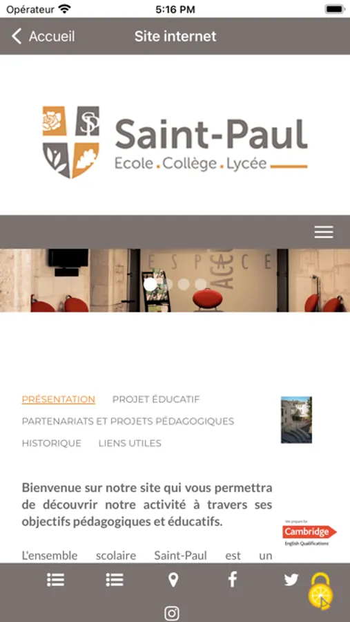 Application de l'établissement scolaire Saint Paul à Angoulême.