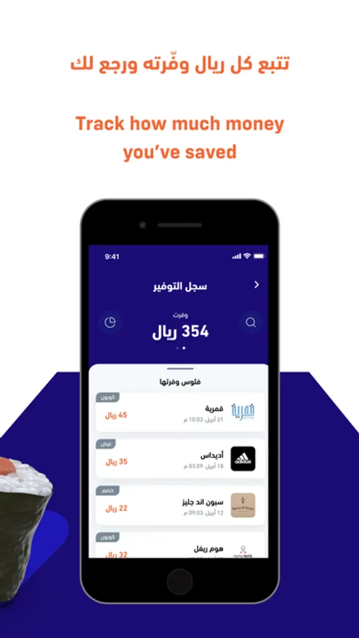 Get a visual breakdown of your savings and track which brand you saved on the most.
