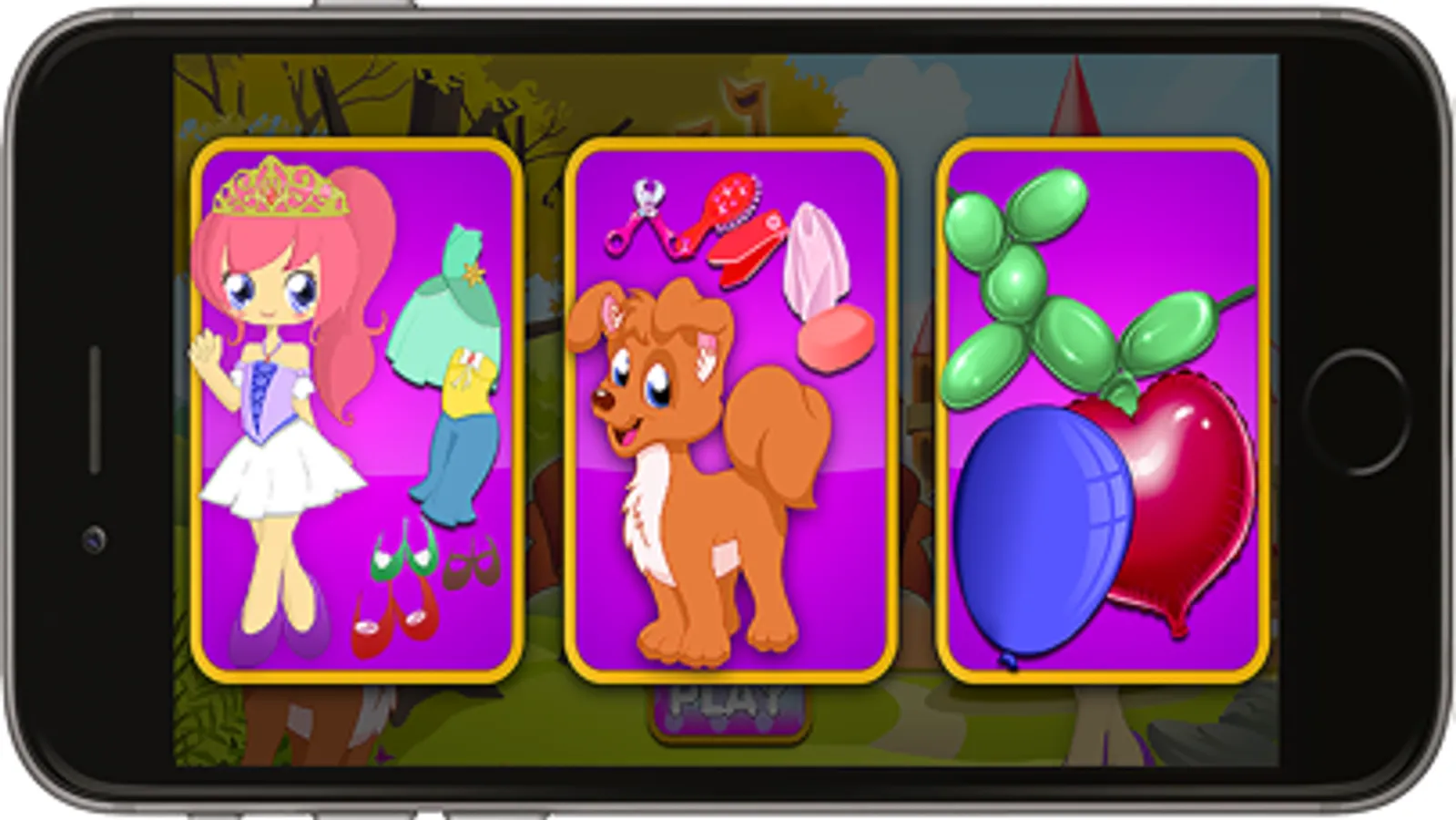Fun and exciting game for little beautiful girls. Love your pet and take care of him. Dress up your princess and play with balloons.