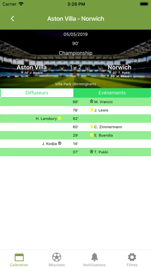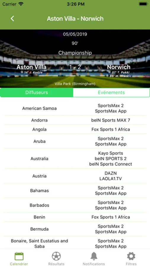 - être notifié lorsqu'un match de son équipe favorite est sur le point de débuter ;