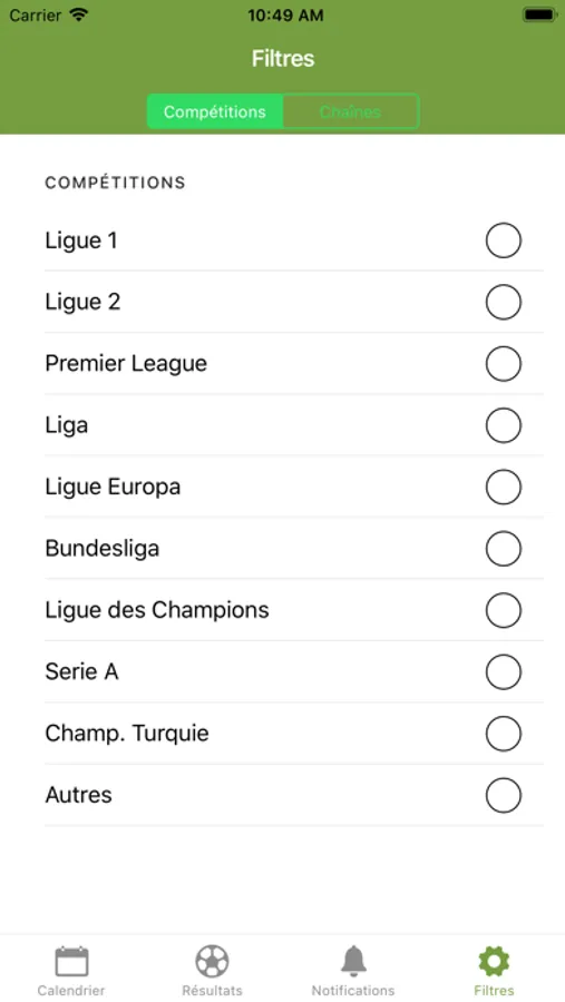 Toutes les plus grandes compétitions sont disponibles sur notre programme tv : Ligue 1, Ligue 2, Premier League, Liga, Serie A, Ligue des Champions, Europa League, Ligue Europa Conférence, Coupe du Monde etc.
