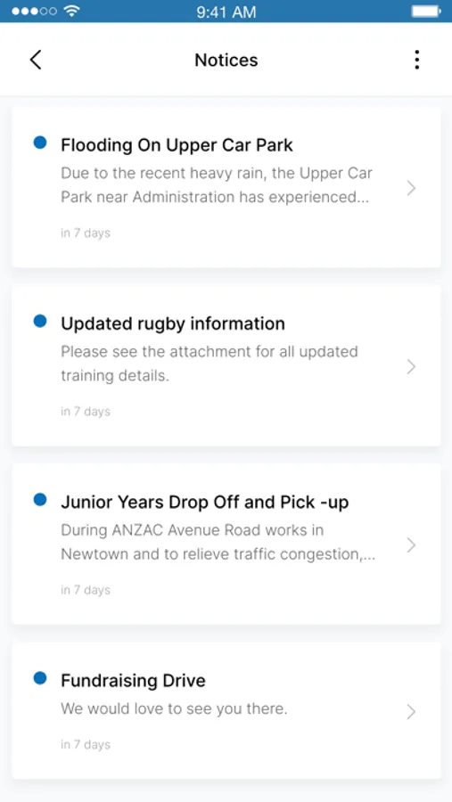The notices section keeps you informed of important daily notices as they become available. Push Notifications will also be sent to inform you of any urgent or important information. Buses are late? The notice section will alert you.