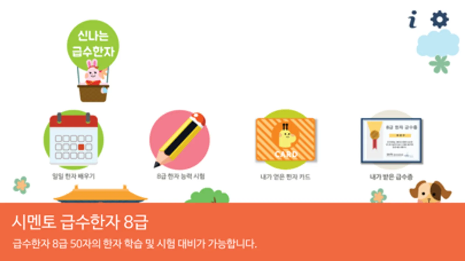 시멘토 교육앱 급수한자 8급 앱을 통해서 급수한자 시험대비가 가능합니다!