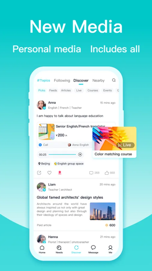 Media-converging tools such as feeds/articles/live broadcasts/courses/events.