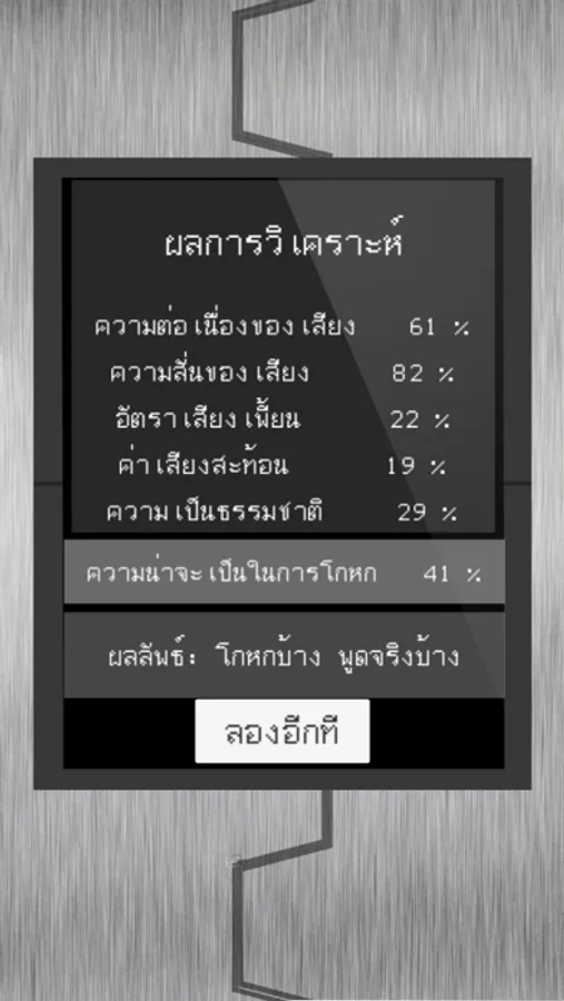 สามารถเล่นกับเพื่อนโดยตรวจสอบได้ภายในไม่กี่วินาที สามารถแกล้งว่าผู้พูด พูดโกหกหรือพูดความจริงอยู่