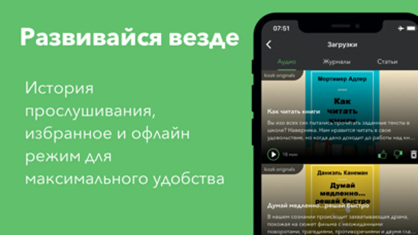 Listen and read over 100 000 educational articles, talks and nonfiction books. Get all the benefits of spending just a few minutes a day in kiozk. Learn more and become smarter.