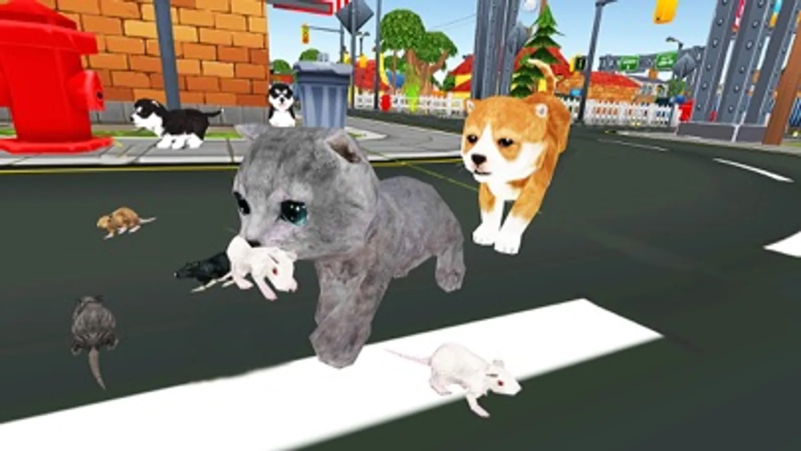 Cat Vs Dog is an amazing simulation Game of 2020. You have to move a kitten cat in a cartoony City. Their are lot of Dogs moving all over the city. Their are also People in whole city. Find Mouse / Rat in City and kill them to boost your Power of Hunger. Their are 4 Different Missions: