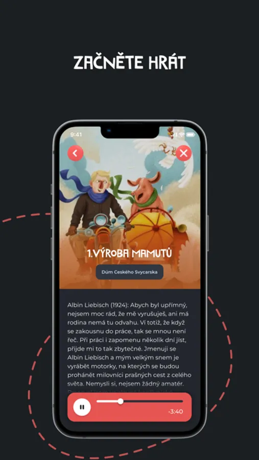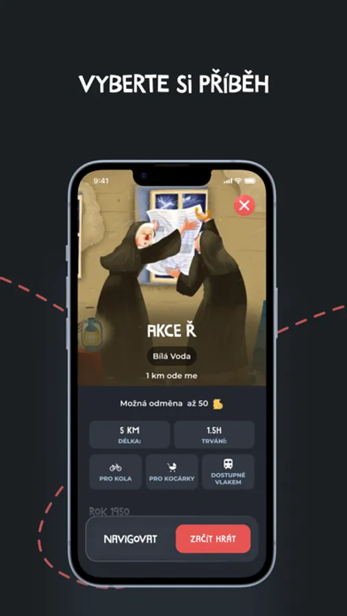 Tato poutavá pátrací hra pobaví a zároveň poučí děti i dospělé. Vyberte si místo, kam se chcete podívat, stáhněte si do mobilu připravenou misi s off-line mapou, audio nahrávkou příběhu a herními instrukcemi a vydejte se za zábavou. Na každé trase se zaposloucháte do příběhu vyprávěného historickou postavou, která je spojena s daným místem a právě řeší nějaký malér nebo obtížný záměr. Na jednotlivých zastaveních pomáháte posunovat historii tím, že řešíte úkoly, a za to sbíráte body. Na konci trasy si můžete udělat selfie s postavou, které jste pomohli.