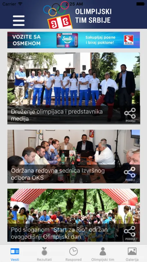 Olimpijski komitet Srbije je kreirao aplikaciju za praćenje Olimpijskog tima Srbije u novim pohodima ka olimpijskim medaljama. Aplikacija sadrži informacije o olimpijskom timu na narednom takmičenju kao i pojedinačne informacije svakog sportiste. Kompletan raspored naših sportista, njihovi rezultati, najnovije vesti kao i galerija slika sa Olimpijskih igara u Riu biće vam na dohvat ruke. Ispratimo naše olimpijce do poslednje stepenice!