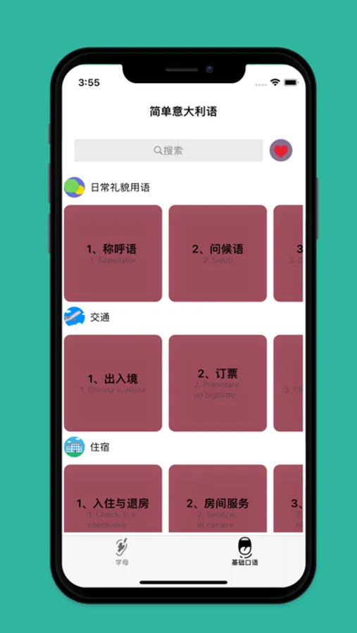 常用意大利语,简单而实用,包含了较常用的基础意大利语口语与短语,随身携带的意大利语老师,打造一口流利意大利语。