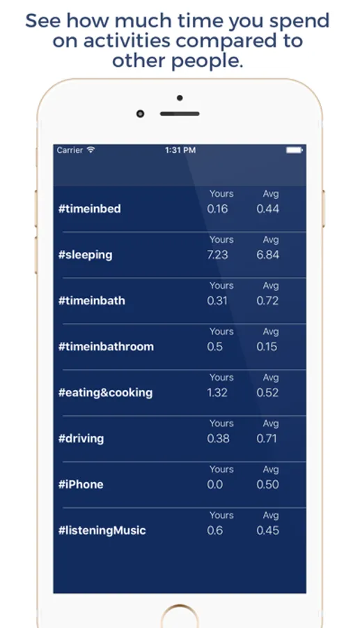 You can check your time compared to the average for certain activity, get more insights on your time.