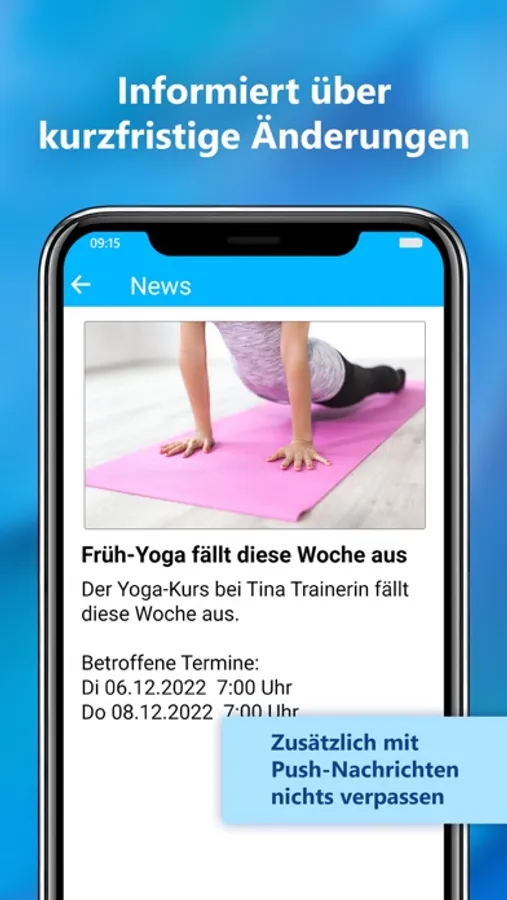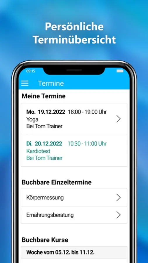 Die App zeigt persönliche Trainingspläne und -ergebnisse an, bietet die Möglichkeit Trainertermine zu vereinbaren und informiert über Angebote, News, Kurse und Öffnungszeiten des Fitness-Studios.
