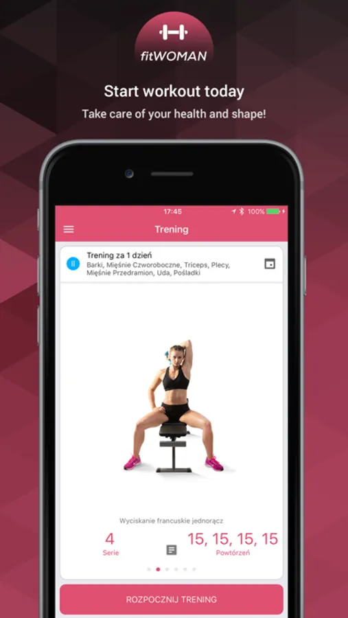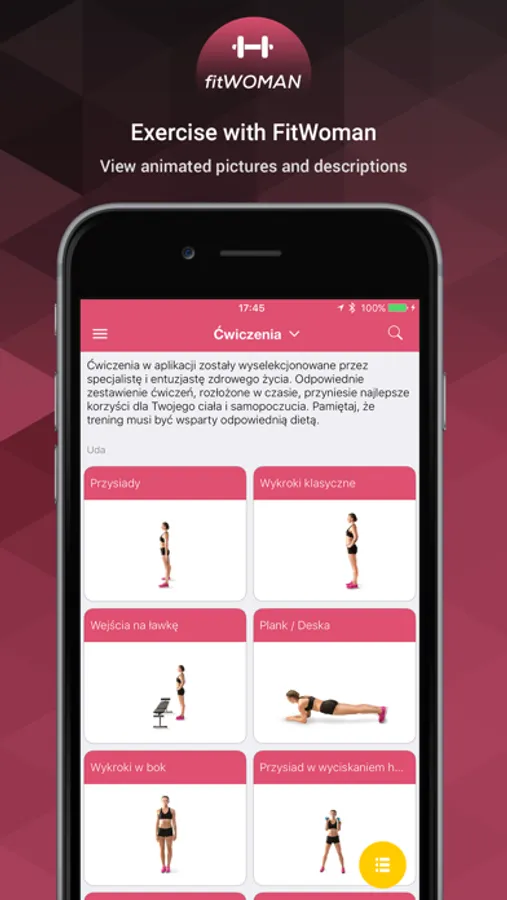 Fit Woman - Fitness Gym Workout is a free application with strength training, using not only light weights but also the weight of your own body, which was prepared specifically for active women. Each exercise is precisely described and well illustrated.