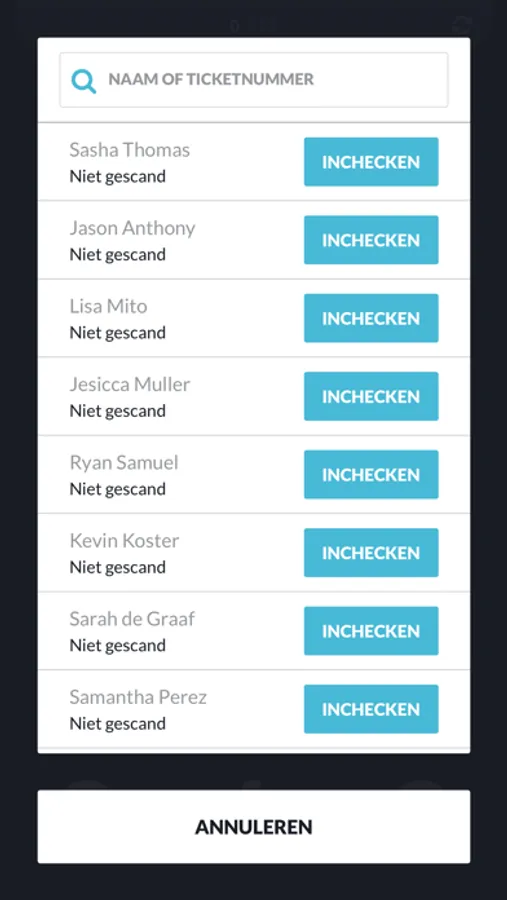 - Scan tickets (met QR-code) vanaf mobiel, papier of voer de barcode handmatig in
