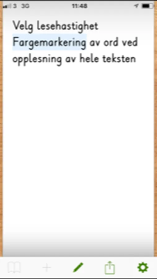 Fargemarkering av ord ved opplesning av hele teksten.