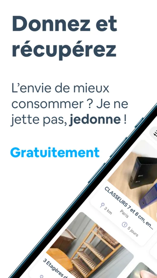 En utilisant l’application, vous faites non seulement preuve de générosité envers les autres, mais vous contribuez également à la lutte contre la surconsommation et à la préservation de notre planète. Alors n'hésitez pas à rejoindre notre communauté de donateurs et de bénéficiaires aujourd'hui !
