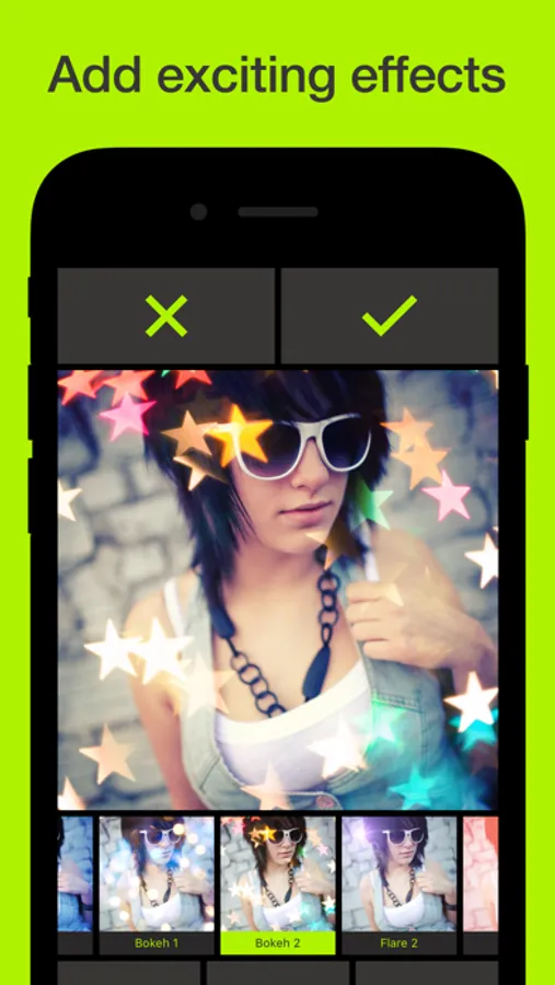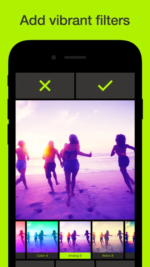 Enhance your photos with just one tap! Acid Wash automatically applies filters, effects and borders to create an instant masterpiece. Each time you tap, your snap is transformed with a creative new look. Or manually select one of thousands of original photo-enhancing combinations. It’s fun and easy to create!