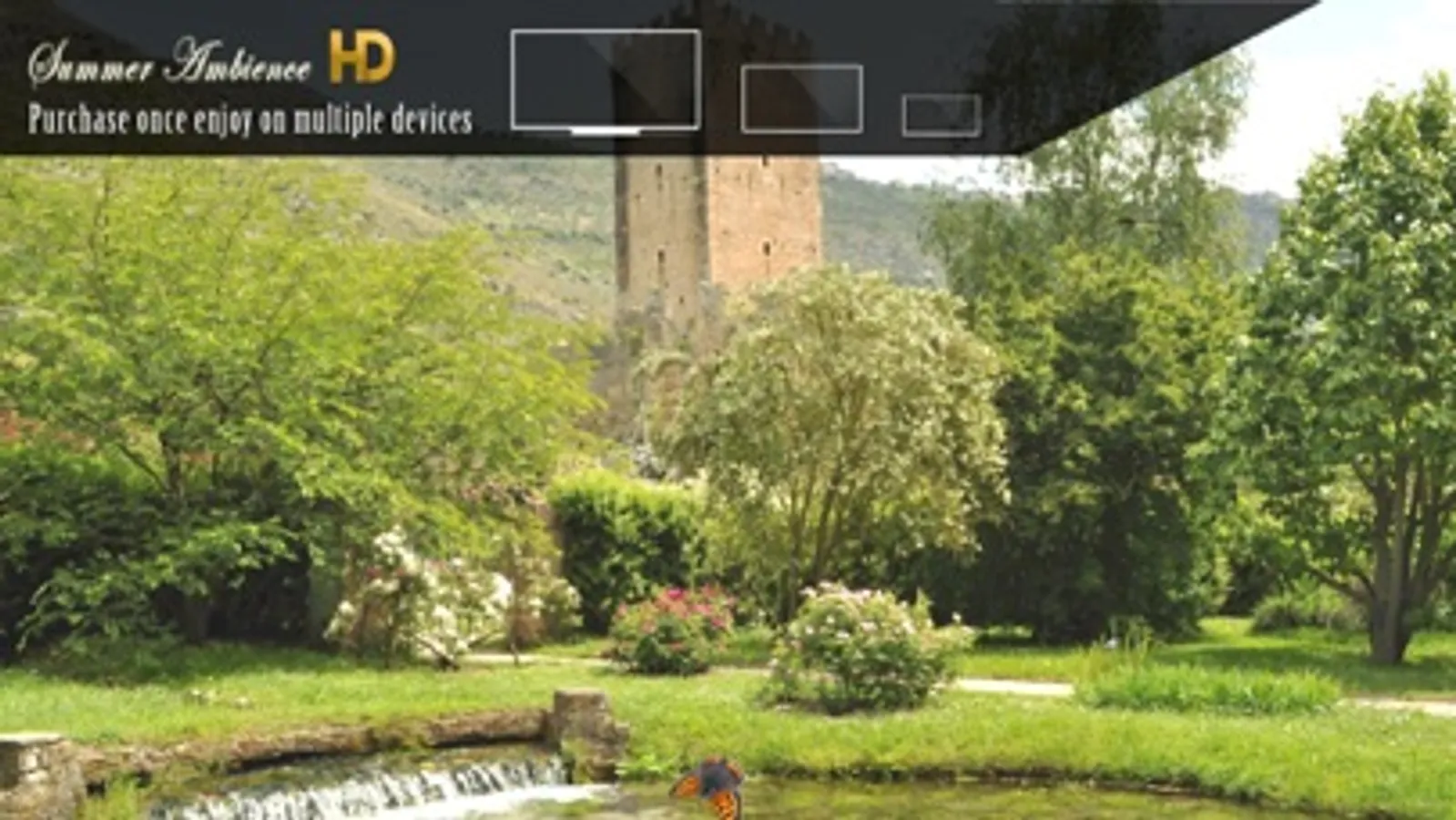 Bring the ambience of picturesque summer scenes right onto your TV, Tablet / Phone, complete with animated colorful butterflies, dragon flies and bumble bees and soothing relaxing summer ambient sound.