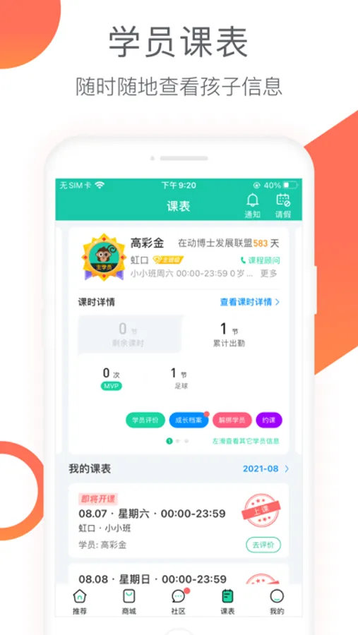 课前上课通知,课后课程点评,更有俱乐部通知随时跟进了解孩子的训练情况。