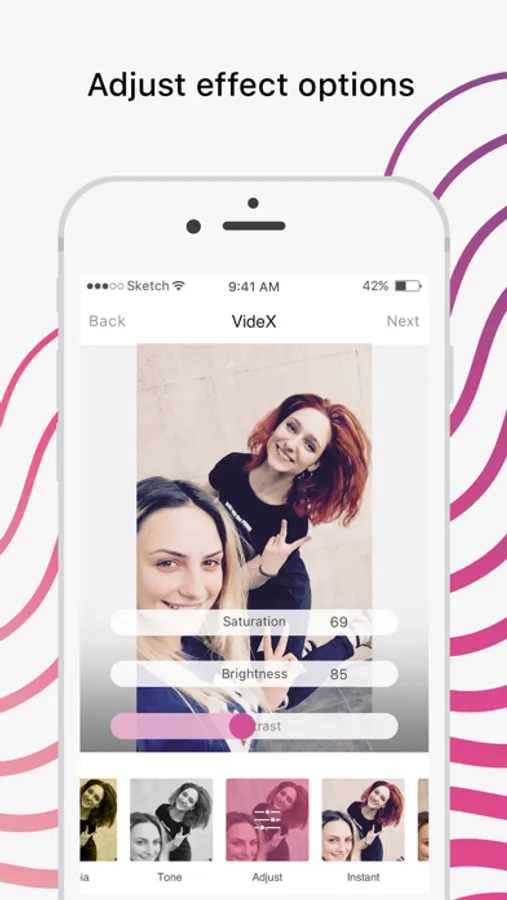 Make any video into a movie-like cinematic experience with our adjustable video effects. Record a video or choose from your library, and with a few easy touches you can apply any of the various effects and filters, and adjust them to your liking. With adjustable effects you’re in creative control.