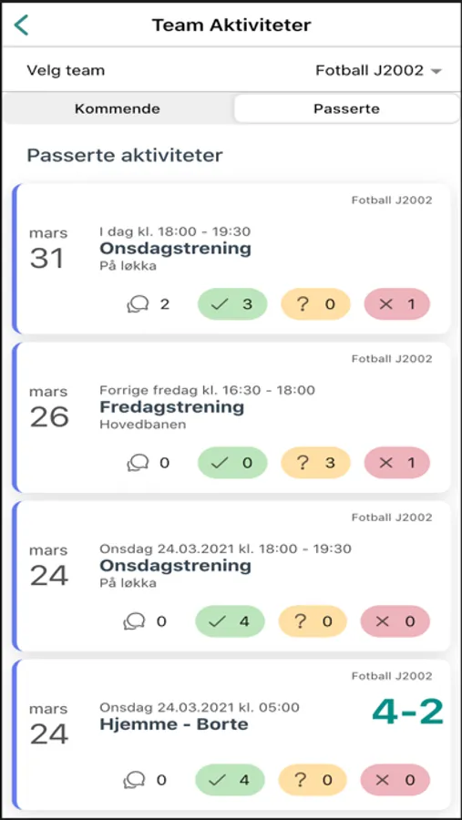 App'en viser aktiviteter for utøveren(e) du har følger eller for team(ene) utøverene tilhører.