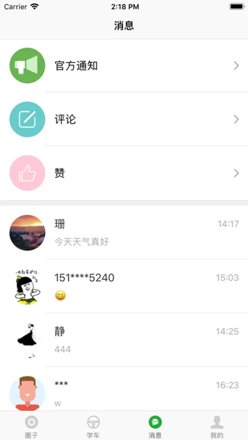 5、教练端对学时和课程管理一目了然,对学员管理非常直观,与学员沟通只需一键即可建立通话;