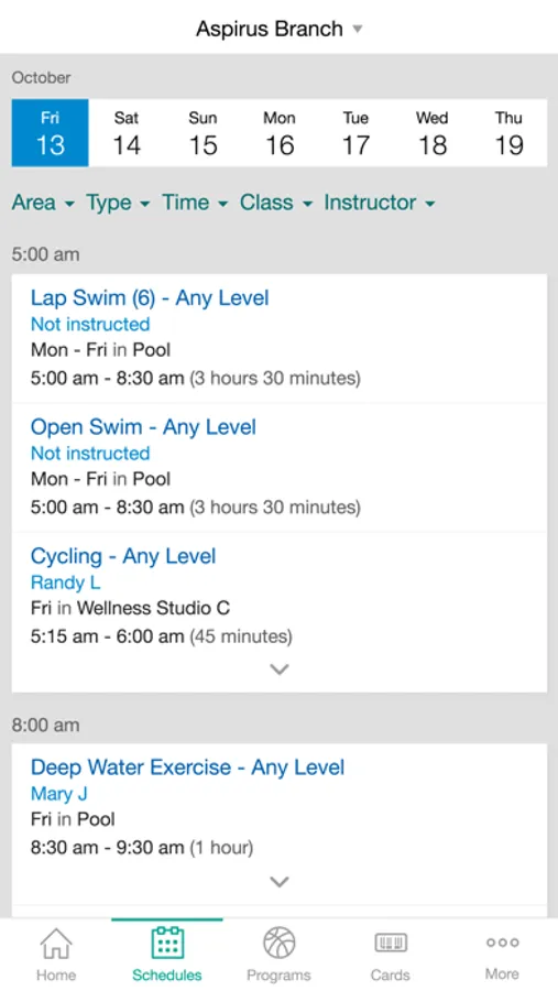 • Easily view schedules for each day and filter for the types of classes that you like.