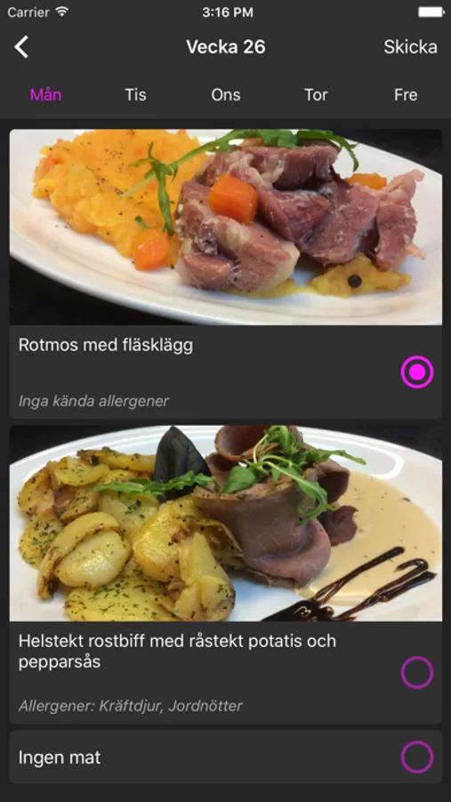 Att fylla på kroppen med rätt energier till lunch är viktigt för att orka resten av dagen. Detta vet de flesta om. I skolan har man oftast en varm rätt och en vegetarisk rätt att välja på och sen är utbudet slut. Vi kan med vår app Mitt Käk erbjuda er elever fler valmöjligheter i matsalen varje dag, möjlighet för er att ge oss direkt feedback på vad ni tyckte om maten, ni får bilder samt utförliga beskrivningar om varje rätt. Det enda ni behöver göra är att lägga er förhandsorder i appen en gång i veckan. Enkelt!
