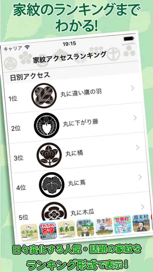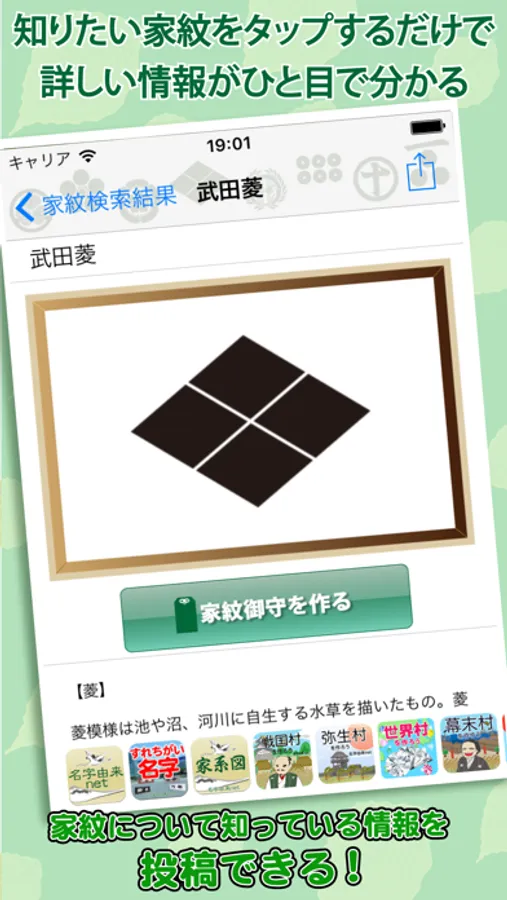日本最大8000種類以上の家紋を網羅し、このアプリひとつで家紋のことが何でもわかる!!
