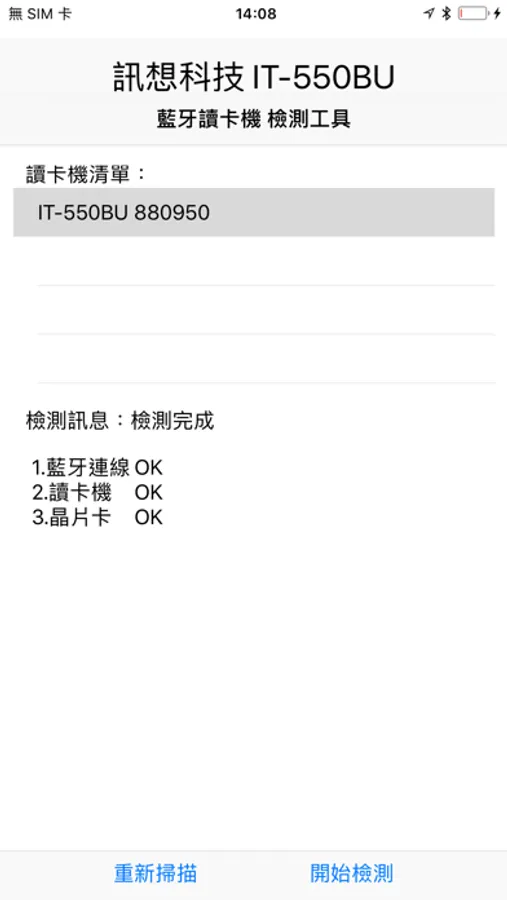 InfoThink IT-550BU Bluetooth smarcard reader diagnosis tool.