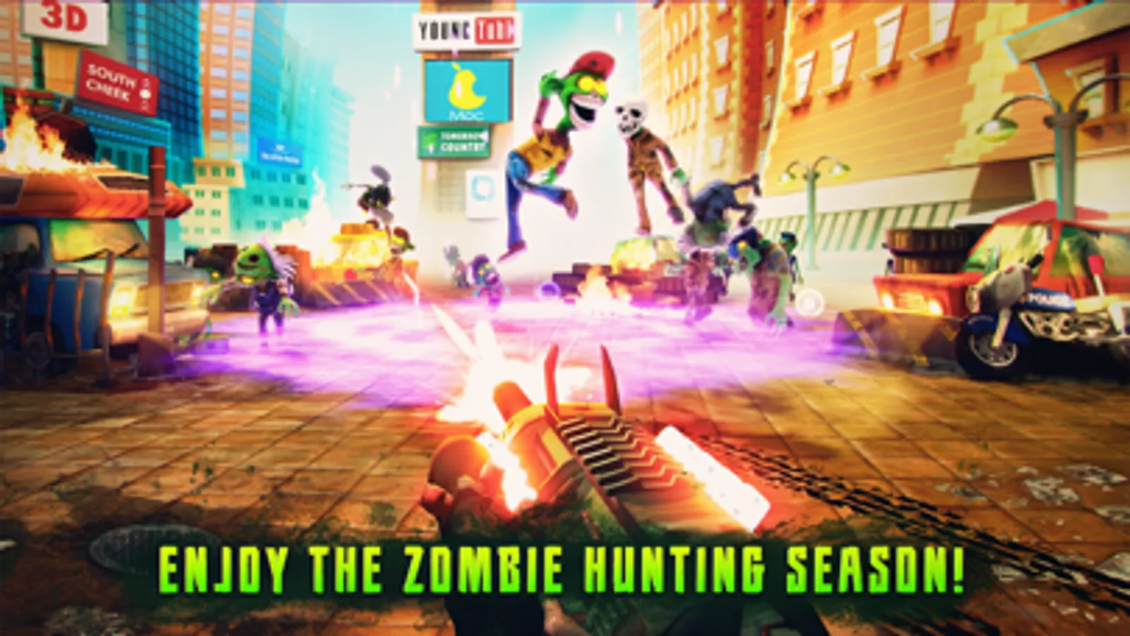 Get ready to meet and defeat legions of zombies all over the world at the end of days. Use a highly diverse arsenal of weapons - modern, laser, explosive and more - to take care of the hilariously dumb Z's before they bite you for good! Earn more and more bucks each given day to upgrade your weaponry and supercharge the power ups to have the greatest zombie busting time ever in your life!