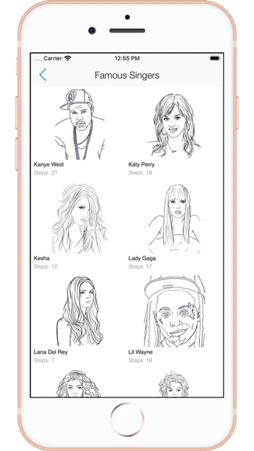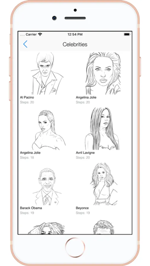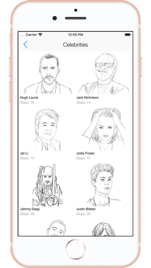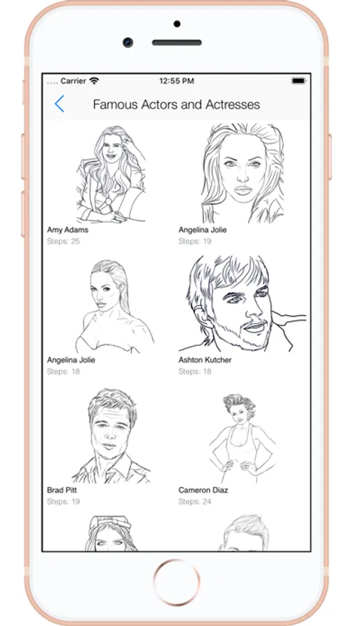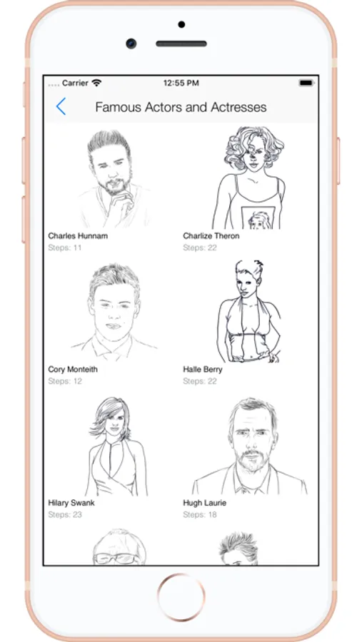 * Draw Famous People has collected a lot of various lessons. You can find any interesting famous actors, actresses, singers,... you want in Draw Famous People. All of them is here.