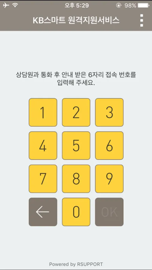 2.상담원에게 전달받은 접속코드를 입력 후 OK버튼을 누릅니다.
