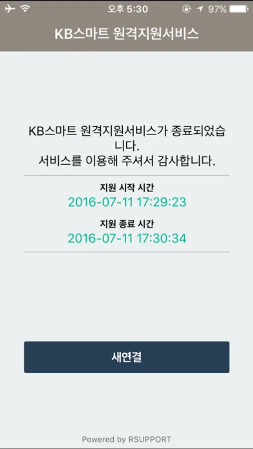 KB스마트원격지원에 관한 문의사항은 KB국민은행 홈페이지(www.kbstar.com)의 고객센터를 이용하여주시기 바랍니다. (1599-9999)