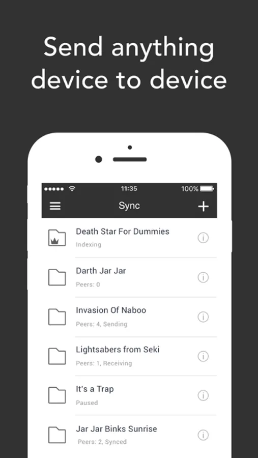 Create your own private cloud. Connect devices and sync files securely without sending them on third-party servers. We don’t limit your speed or storage space: our technology works especially well with huge files.