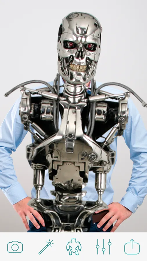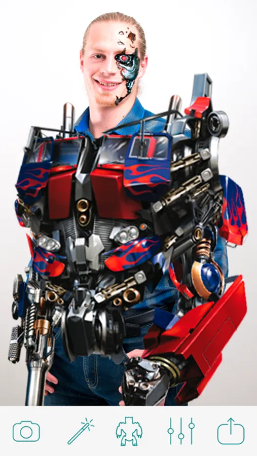 Do you want to travel in the future and become a cyberghost? Try out our new robotek faces app Make Me Robot. Are you looking for an original caricature maker, which offers something new? Then you will celebrate our Make Me Robot app with various tools and camera effects! This photo collage maker contains variety of photo effects, which will help you to create a futuristic photography.
