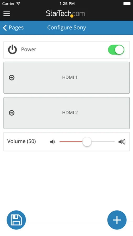 • Issue console commands, build a command library, or design a control page that’s tailored to your application, complete with buttons, sliders, and switches.