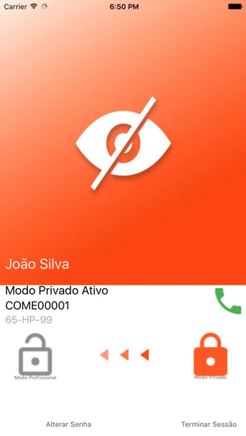 Esta aplicação móvel da Cartrack permite ao condutor colocar-se em modo privado de forma a que o gestor de frota não tenha acesso à sua localização e actividade pessoal.