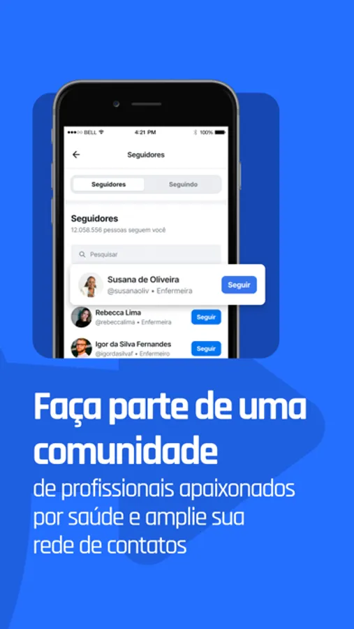 Mantenha-se conectado com uma rede de profissionais da saúde, tenha acesso a conteúdos atualizados em tempo real e encontre perfis que buscam sinergia com a sua rotina, além de oportunidades para alavancar a sua carreira.