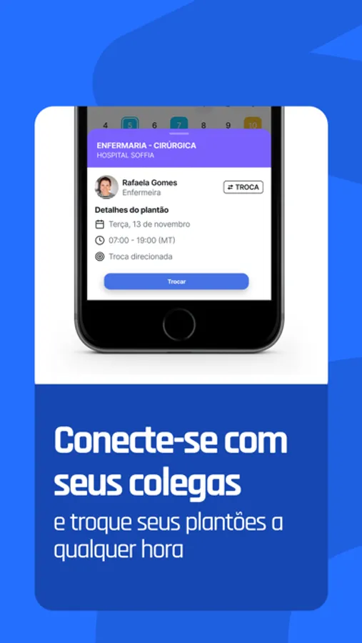 Adicione seus próprios plantões e agrupe todas as suas escalas no mesmo lugar, otimizando seu tempo e deixando sua rotina mais fácil e ágil.