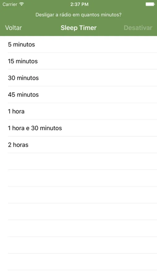 * Função Sleep: programe quando a rádio será automaticamente desligada