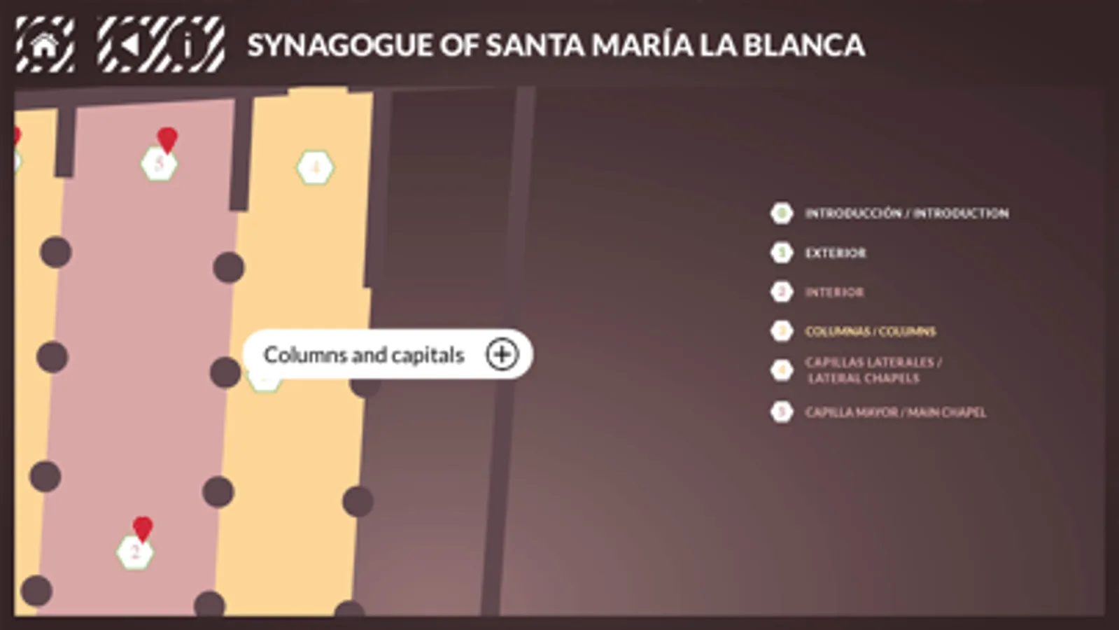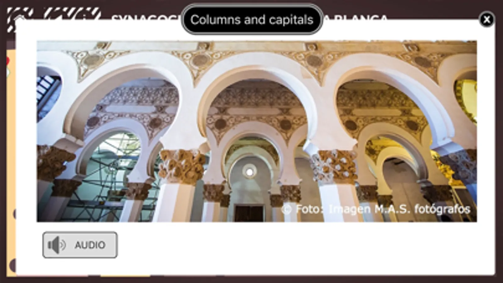 A handy guide and an audio app of the Synagogue of Santa María la Blanca, in Toledo, in a one device, your own phone!. Entertaining and intuitive, the only way to know each place and element of the temple during your visit. You will also have a memory forever of what you've seen and it costs less than a coffee.