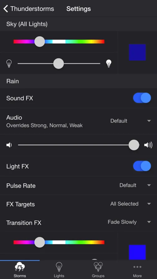 • Change rain transition effects (pulse, fade quickly, fade slowly)
