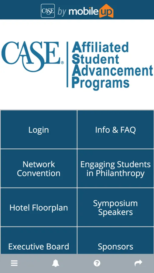 The CASE ASAP conference app offers student alumni associations, student foundations and similar organizations the opportunity to experience the first mobile app to offer true student engagement. Using the conference mobile app, users will be able to experience conference activities and traditions just as if they were a student on campus participating in the long held traditions of their university. The app offers the opportunity to achieve levels based on the number of activities completed as prescribed in the app. The mobile engagement app also allows students to share their experiences via social media and in app highlight reel.
