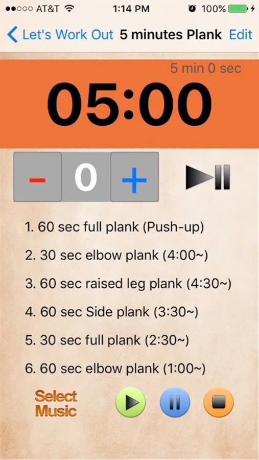 Let's Work Out provides people who want to exercise with Timers and brief instruction! Main Features: 1. Countdown Timer, 2. Set count, 3. Time management, 4. Music in your iPhone, 5. Save your Log.