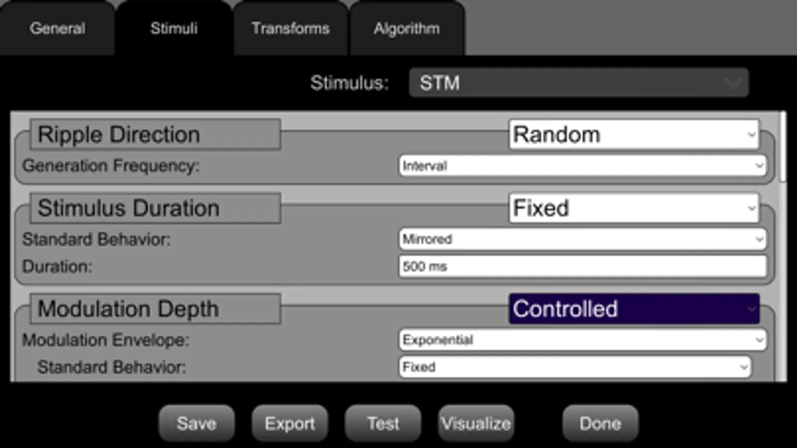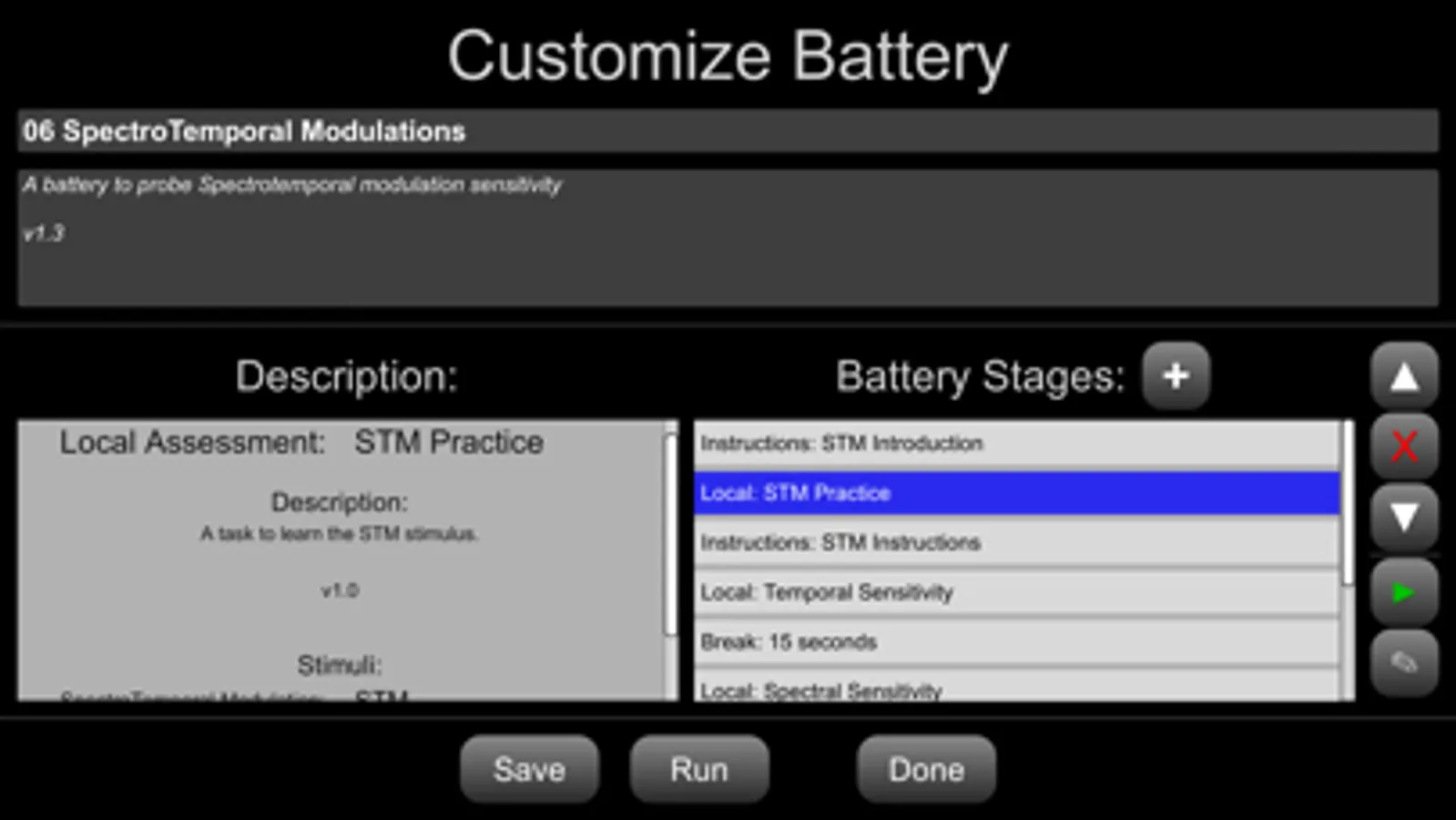 Default Batteries are included that present limited instructions and examples and include a number of the assessments described above. For further information on the default batteries, the availability of additional custom batteries, Matlab scripts for analyzing the user data, and to have questions answered on the functionality of PART, including calibration, please email fgallun@gmail.com to be added to iPUG, the iPad Psychophysics Users Group.