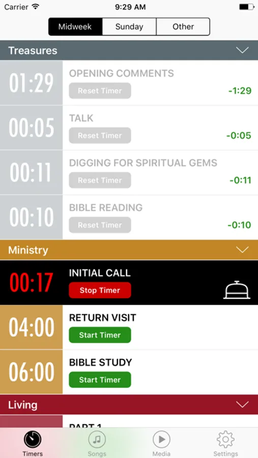 This app is a remote control for the SoundBox Windows software, typically used by congregations of Jehovah's Witnesses to manage audio and visual media and the timing of each part of the meeting.