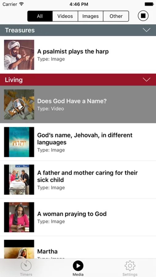 Media will be grouped into the Meeting Sections (Treasures, Ministry, Living) and listed in sequential order.