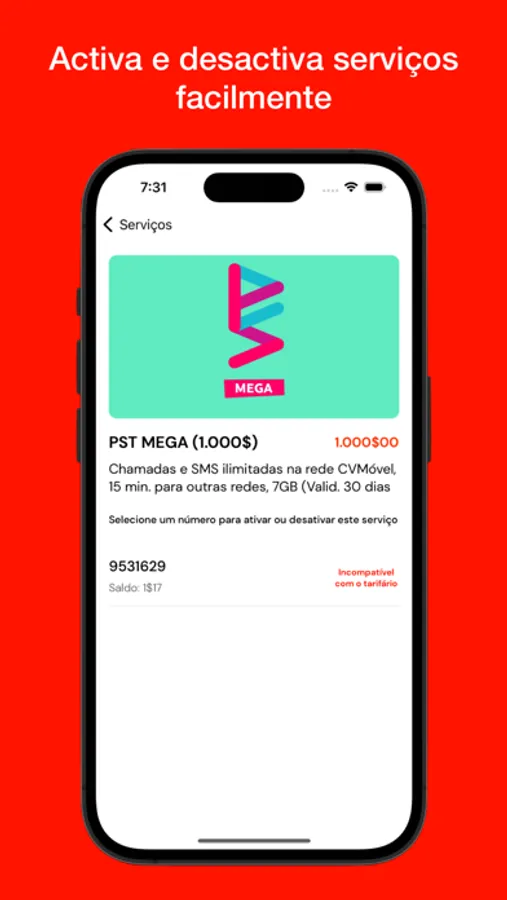 Consulta saldo, histórico de chamadas, activa e desativa serviços, recarrega saldo, envia SMS's grátis dentro da rede, consulta catálogo de produtos, promoções, novidades e muito mais.
